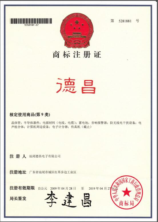 是汕尾德昌電子有限公司在中國的注冊商標之一,受法律保護,侵權(quán)必究。 未經(jīng)汕尾德昌電子有限公司書面許可,任何單位和個人不得以任何方式或理由對該商標