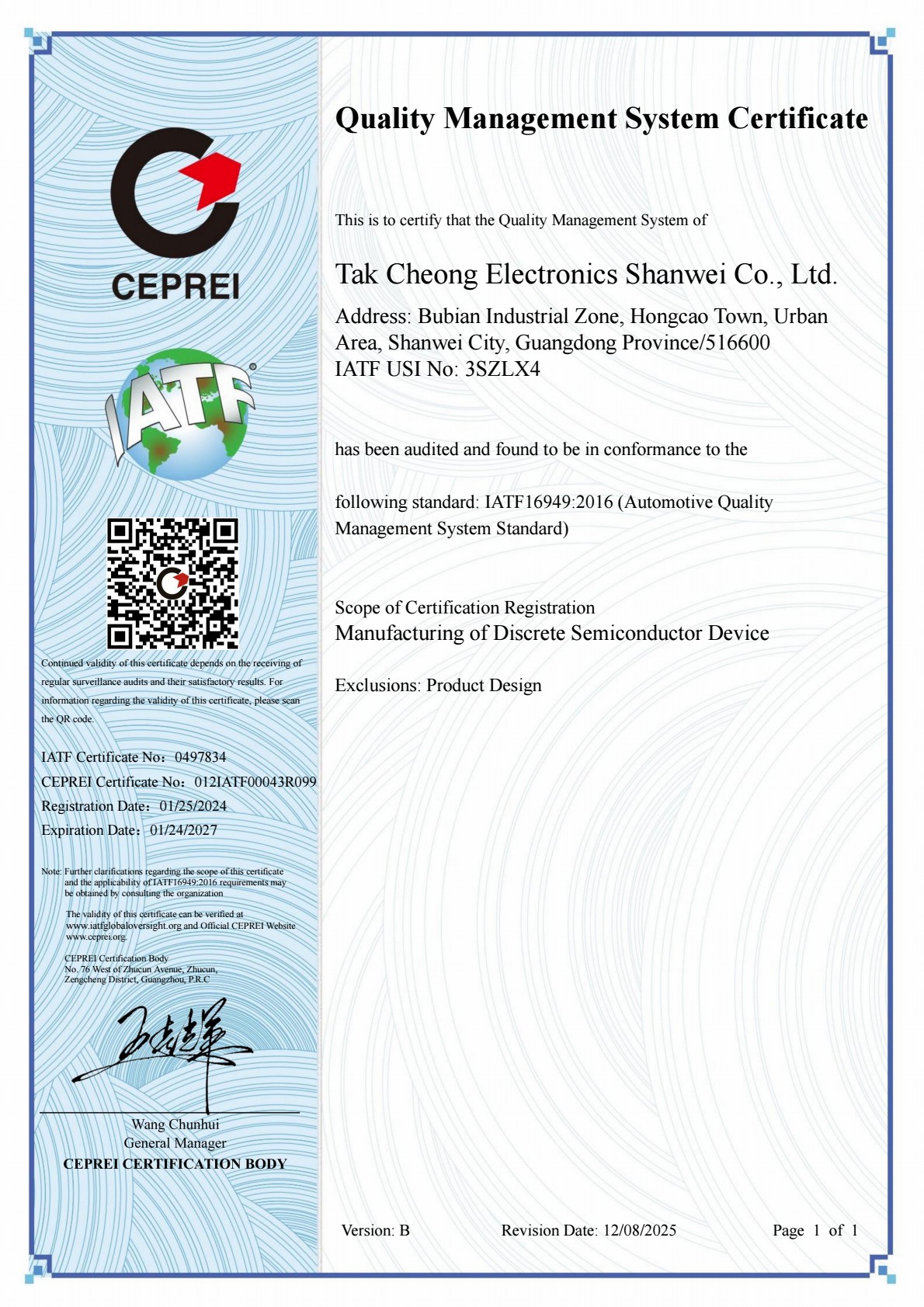 HOME >> MANAGEMENT SYSTEM >> QUALITY SYSTEM >> CERTIFICATE